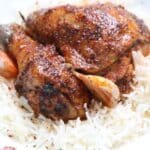 You can also add a tablespoon of zaatar spice blend to the glaze at the end to make a herby red chicken.