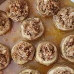 Turn the heat to lowest and add a small spoon of the mince meat mixture in the middle of the artichoke hearts